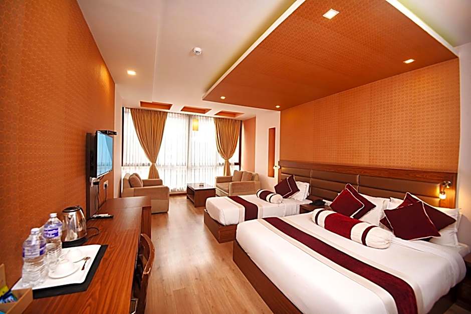 Not only will you be treated to a mouthwatering breakfast each morning, but you'll also enjoy the luxury of complimentary Wifi and cozy, air-conditioned rooms complete with free toiletries for your comfort. Dive into delectable delicacies at the on-site restaurant, or unwind with a drink at the bar after a day of exploring. With a dedicated tour desk, friendly 24-hour front desk staff, and an airport shuttle service available (for an extra charge), getting around Kathmandu has never been easier!